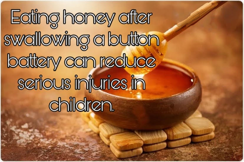 Third, if you suspect your child swallowed a battery, IMMEDIATELY call 9-1-1 or head towards the ER. Honey can be given to children over the age of one who can swallow. 2 teaspoons every 10 minutes.